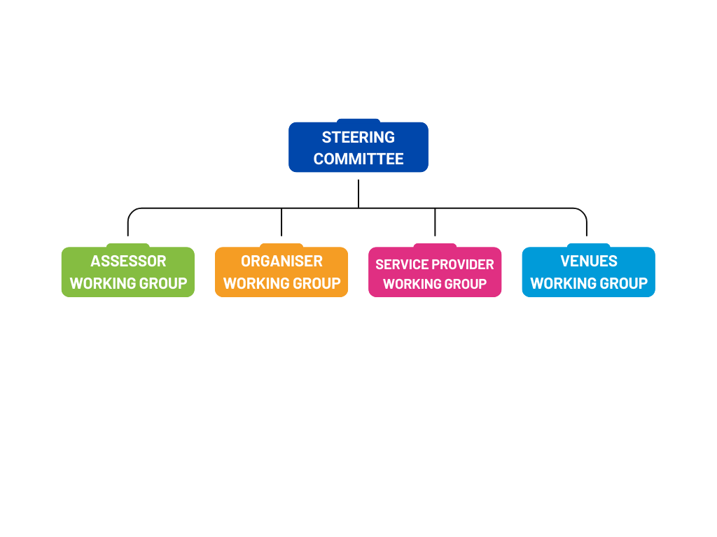 Better Stands is stewarded by a group of industry stakeholders, the Steering Committee, who rely on the support and feedback of four key working groups: organisers, venues, service providers, assessors.